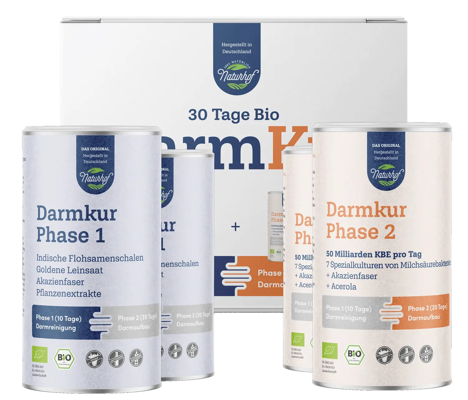 Die Darmkur zeichnet sich durch ihre 2-Phasen-Formel aus, die nicht nur auf die Linderung von Symptomen abzielt, sondern die Ursache von Verdauungsproblemen an der Wurzel packt. Mit der Kombination aus natürlichen und bio-zertifizierten Inhaltsstoffen fördert sie eine umfassende Reinigung und Regeneration des Darms.
